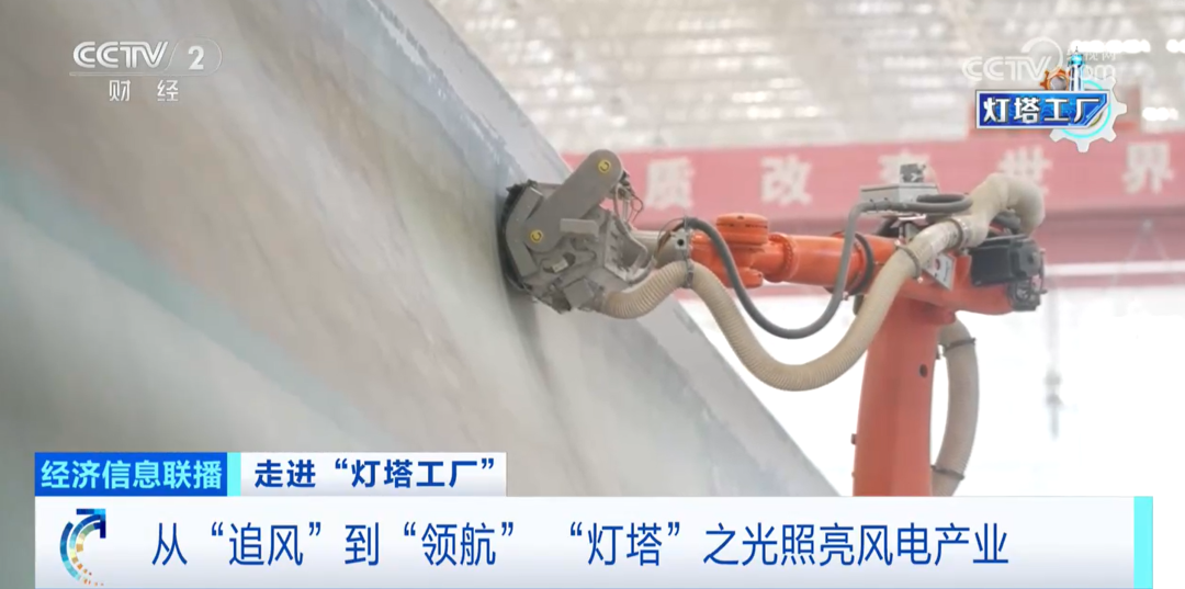 总台央视记者 杨紫薇:站在三一重能这个叶片工厂的车间,我看到了,集中灌注系统让树脂像输液般精准注入模具,机器人自动打磨让叶片平整度变得更高,节约人工成本约75%。在这里工匠的智慧从未消失,而是被沉淀到了数字平台上,成为可复制可优化的算法。
