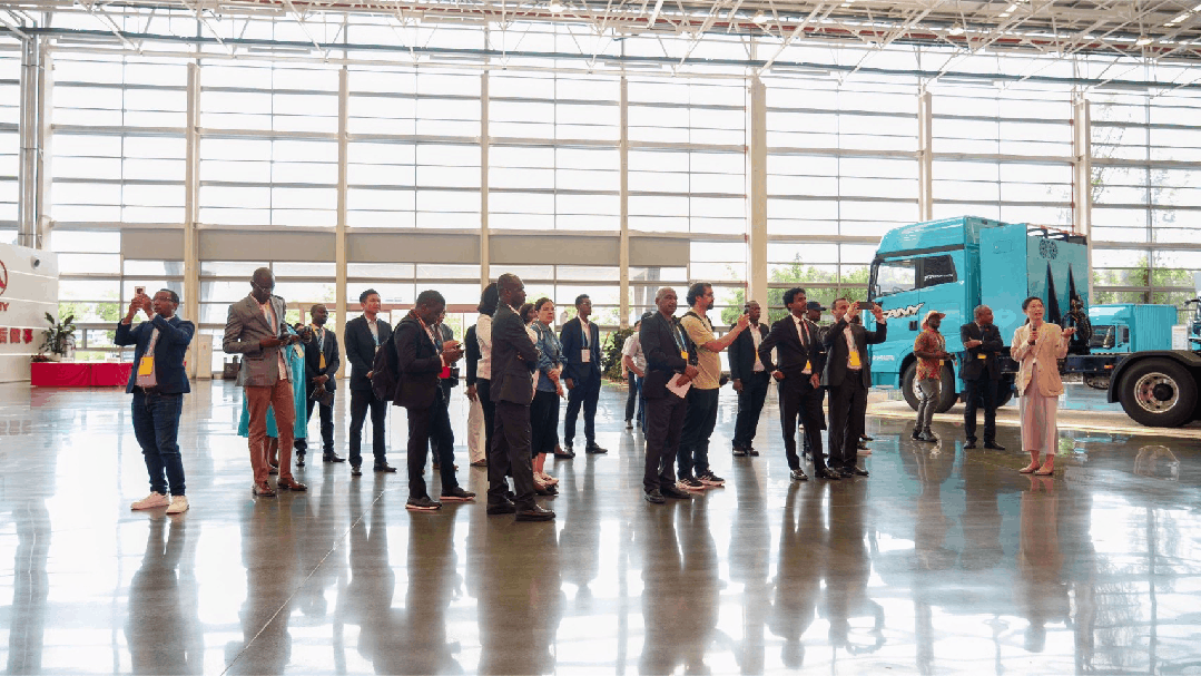 6月11日,来自埃塞俄比亚、安哥拉、布隆迪等国的35名非洲记者在中非经贸博览会访湘期间赴三一考察,深入三一智联重卡产业园区,详细了解三一重卡的生产制造流程,并参观了光伏产品陈列区。
