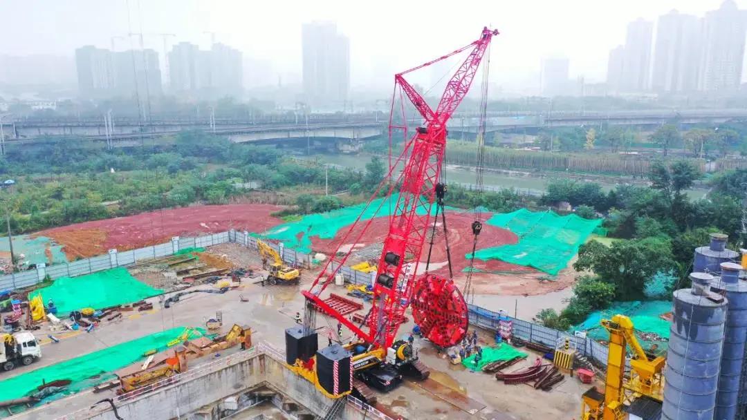 10月28日,成都地铁17号线人民塘站,“卓越号”盾构机刀盘顺利完成吊装进井,三一SCC6200TM履带起重机承担主吊。