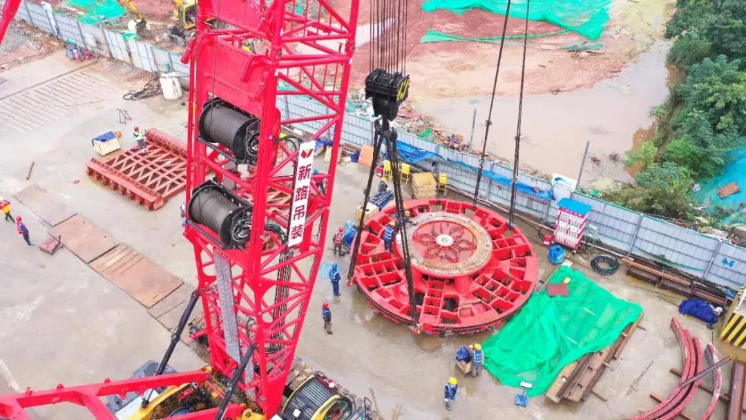 本次吊装的盾构机主要构件全长达到110米,重950吨,其刀盘直径达到8.6米,含刀具、吊具总重达134吨,属超重、超大部件。