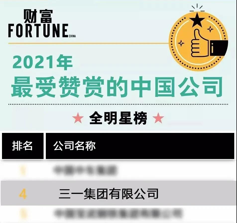 这一年,三一第十一次上榜《财富》最受赞赏的中国公司,连续三年摘得制造业行业桂冠,担当人们心目中的中国力量,不负众望。
