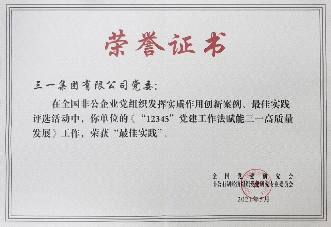 这一年,三一荣获全国非公企业党组织“最佳实践”奖,树起民营企业的党建标杆,以优异成绩迎接建党100周年。